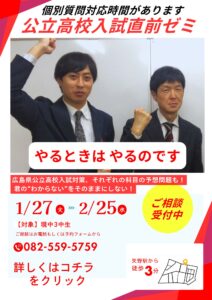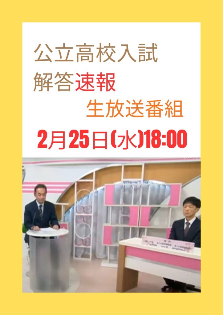 公立高校入試 解答速報 2026年1月8日 最終更新日時 : 2026年1月9日 Goto塾 今年も広島県公立高校入試の解答速報をします。2月25日(水)18時から放送されます。生放送です。是非ご覧ください。 昨年の様子がコチラ!