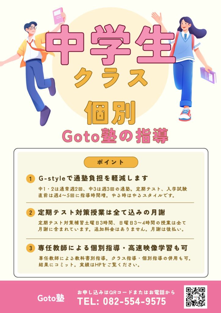 学校教科書別クラスの通常授業で学校の先取り授業をし、毎週金・土曜日にその週の学習内容の定着や宿題の確認を行っています。また、各中学校の定期テスト範囲の発表後は土曜日・日曜日の対策授業・テスト当日の朝学や昼学で、学校成績の向上、志望校合格を目指します。